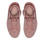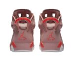 The Aleali May x Air Jordan 6 Millennial Pink features Rust Pink all throughout the upper which has been constructed out of nubuck with Bright Crimson landing on the heel tab, the Jumpman logos on the tongue and tongue lace lock, and the signature mountain peaks on the midsole. A Rust Pink midsole and a milky white translucent outsole with a Bright Crimson Jumpman on it finish off the design.