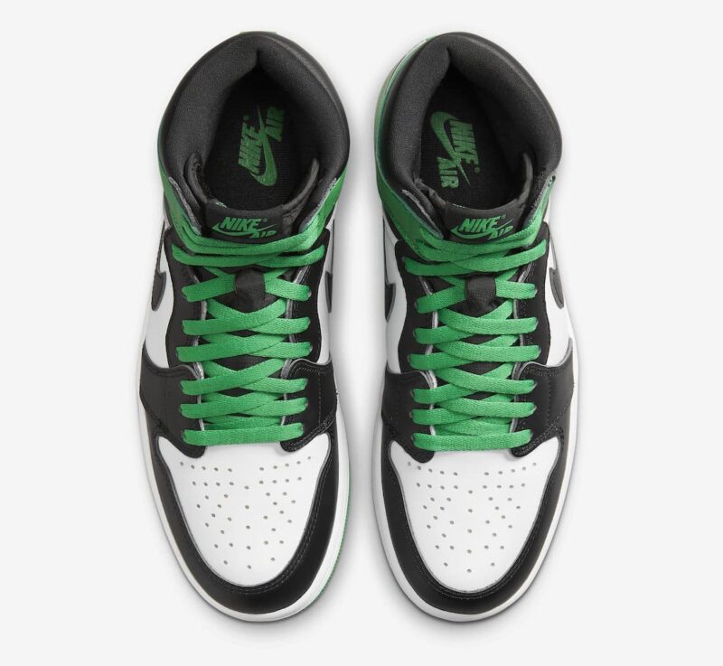 The Air Jordan 1 High OG “Lucky Green” is said to be a nod to the Celtics-inspired Air Jordan 1 from the 2009 DMP Pack. The sneaker features a full leather construction on the upper with White hitting the side panels, Black on the toe and overlays, and the defining Lucky Green seen on the ankles and heels. Finishing details include black Swooshes and Wings logos, white midsoles, and green rubber outsoles.