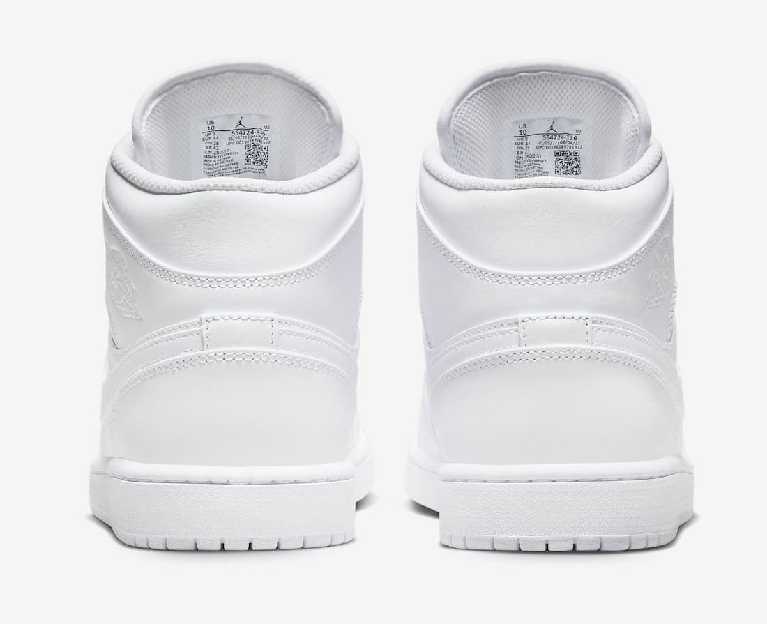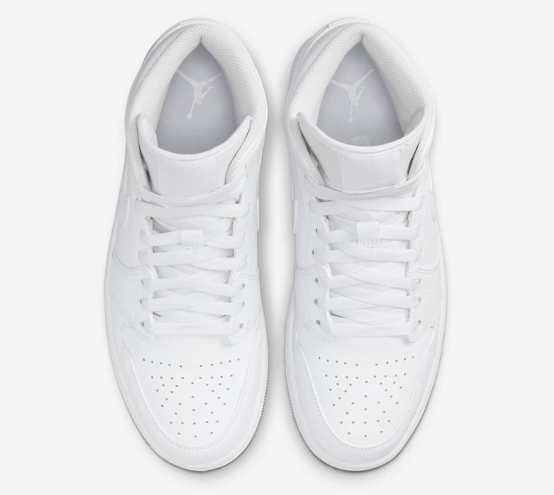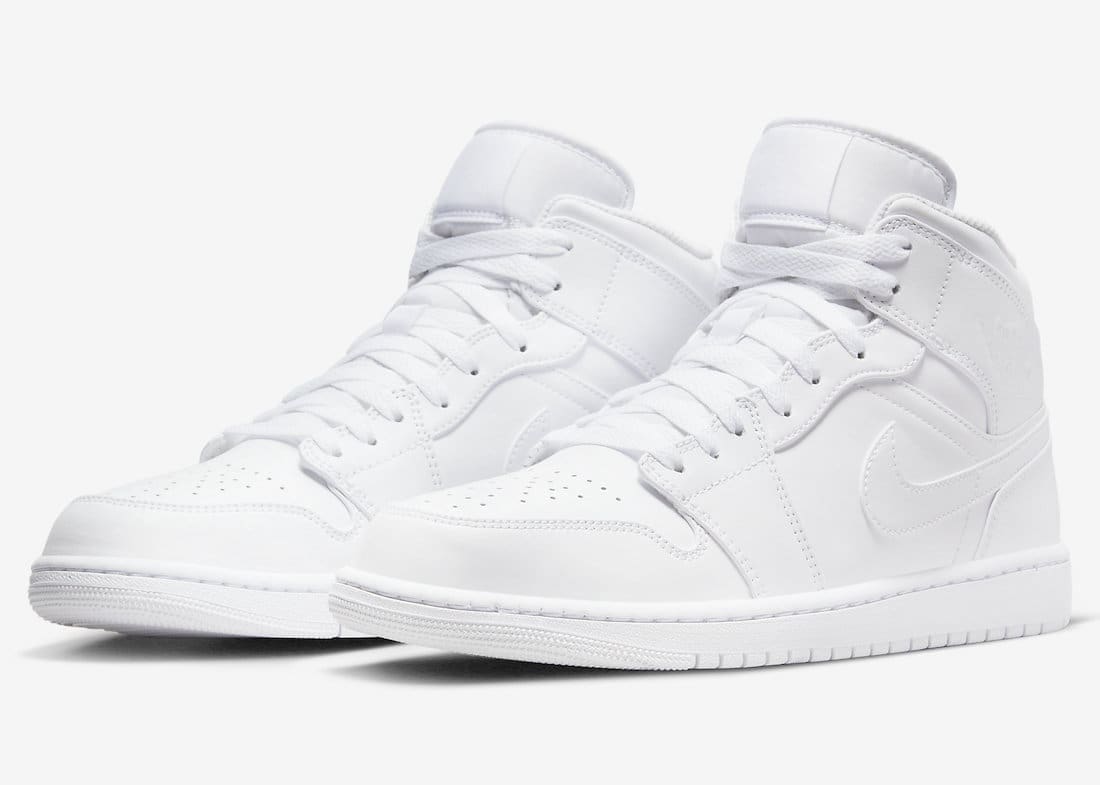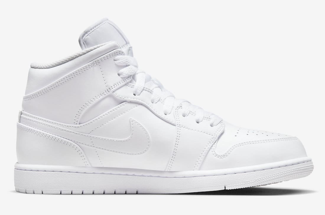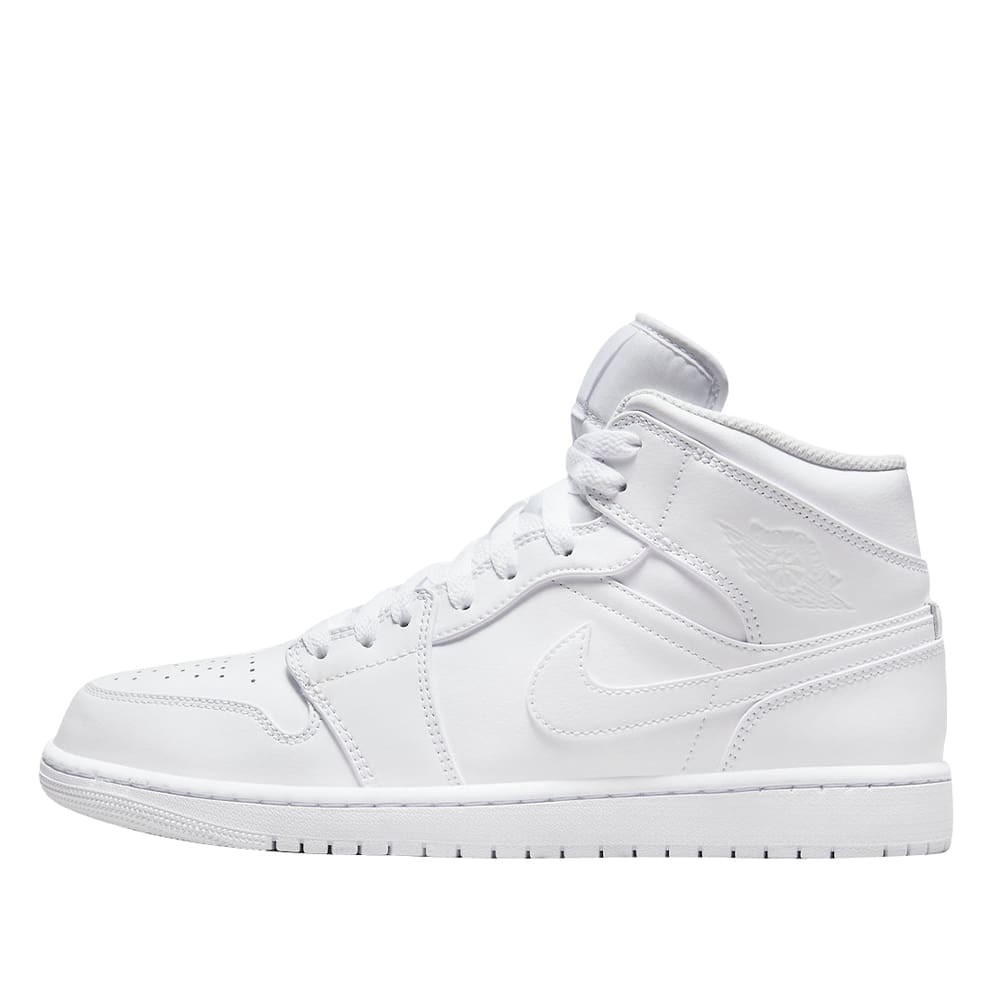 This pristine iteration of the Air Jordan 1 Mid is constructed in a full White leather build paired up with matching colored mesh tongues and lining. The all-White motif extends on to the laces, lining, branding and sole unit.