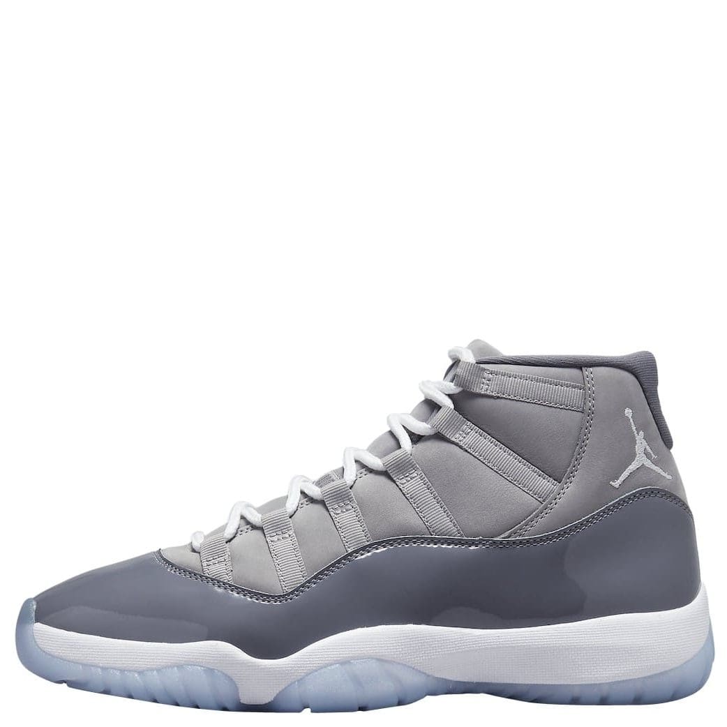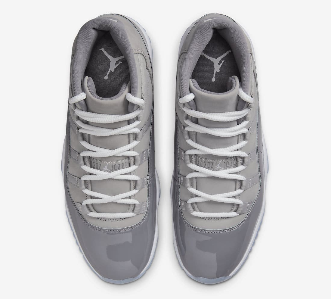 Back for the first time since 2010, this popular Air Jordan 11 colorway comes covered in a couple of different shades of grey on the upper which takes on a soft nubuck and patent leather construction. Like the last few years, this Jordan 11 comes with the higher cut patent leather along with contrasting white on the rope laces, the embroidered Jumpman logos on the lateral ankles, the “23” on the heels, and the midsoles. Down below an icy blue translucent outsole with grey pods and a white Jumpman logo finish things off on this Air Jordan 11