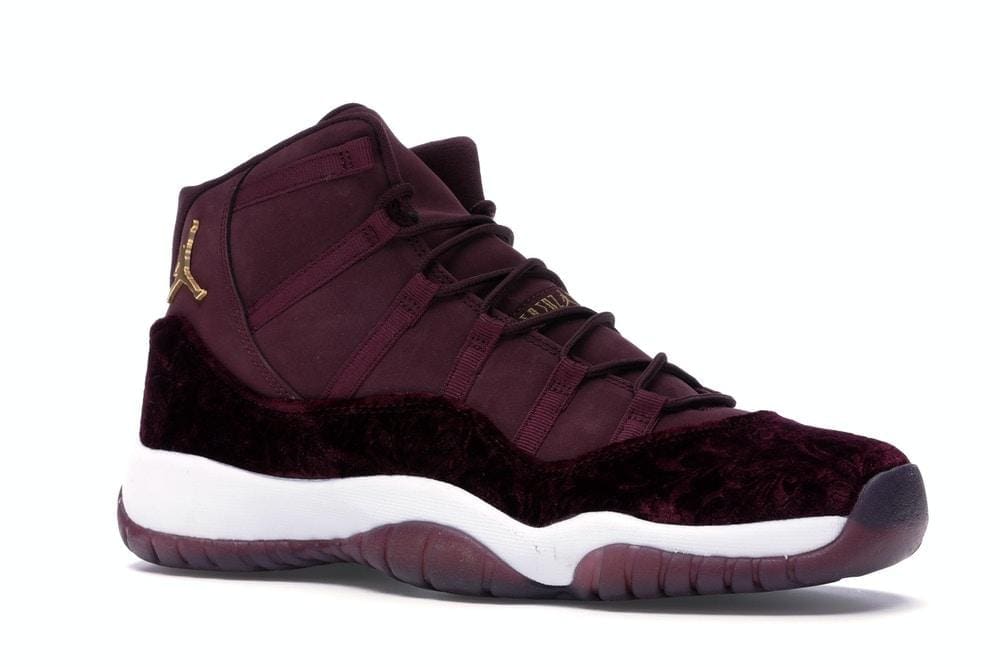Lo último de la colección Heiress usa en su fabricación un lujoso terciopelo granate, combinado con unos sutiles toques dorados que ya vimos en sus dos ediciones anteriores, pero que es en este diseño donde toca techo en el uso de los materiales. Esta vez las Air Jordan 11 se desprenden del uso del charol y en su lugar incorpora un sensacional terciopelo increíble al tacto.