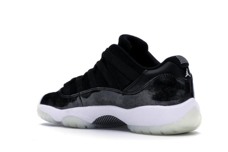 Este modelo hace referencia a la evolución de Michael Jordan en el baseball, en los Barons de Birmingham en 1994 después de su retirada anticipada de la NBA. También llamada Air Jordan 11 Low Black Metallic Silver, esta silueta presenta un upper en piel y nobuk con unos paneles laterales en charol con reflejos plateados para conseguir el acabado iridiscente. El conjunto se completa con una mediasuela en blanco y una suela translucida blanca “milky”.