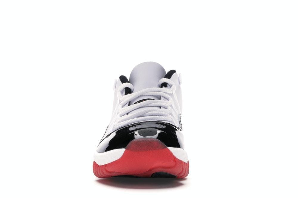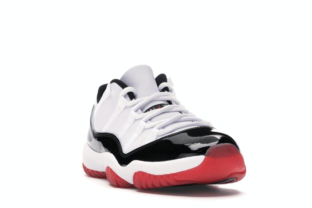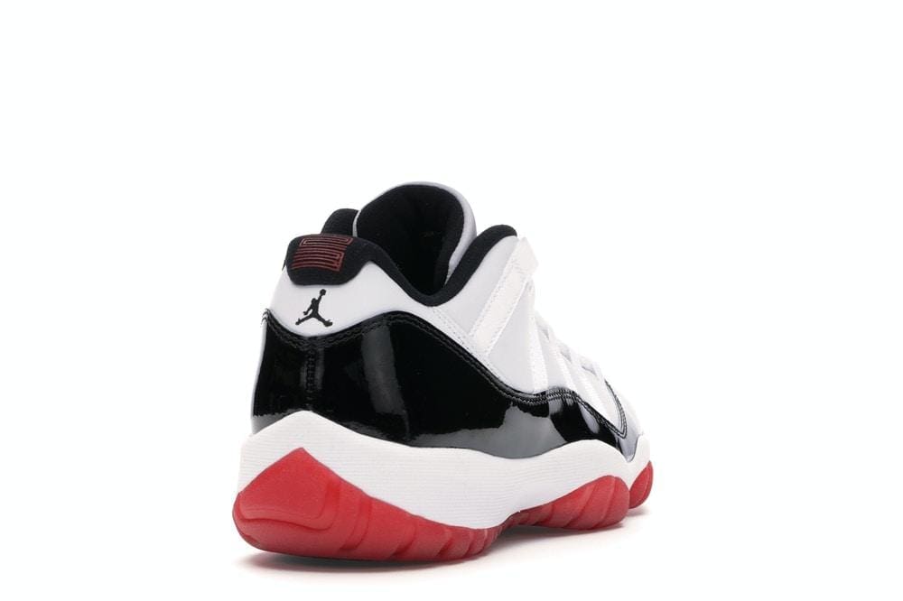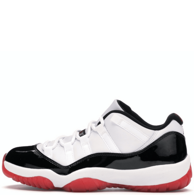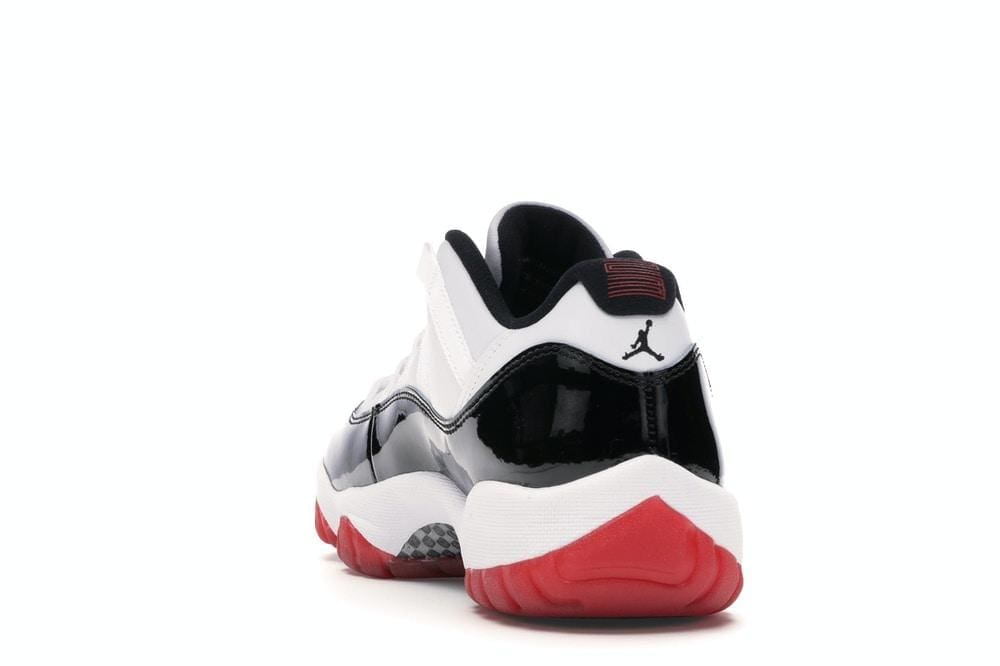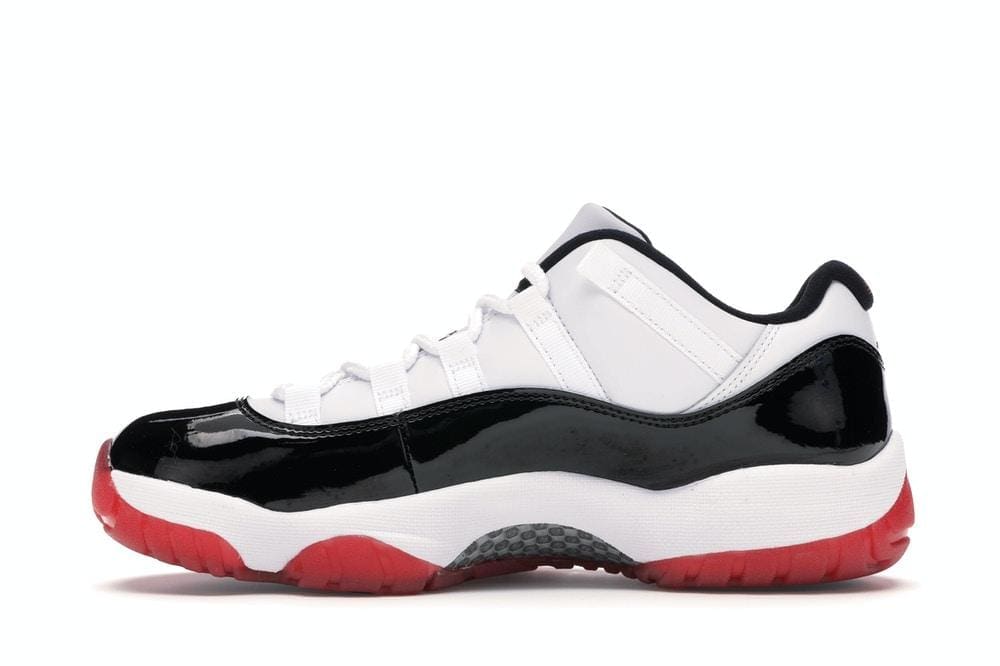 The Nike Air Jordan 1 Low “Concord Bred” pays tribute to two iconic colorways in the original model. The upper features a glossy black mudguard in contrast to the white mesh, while the outsole comes with a red accent that extends to the heel.