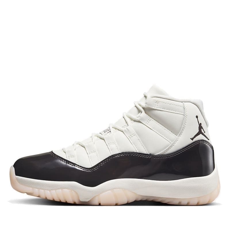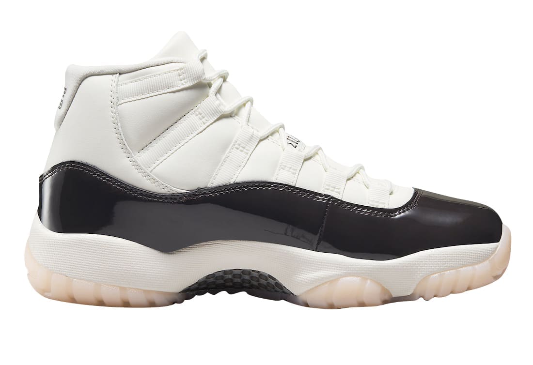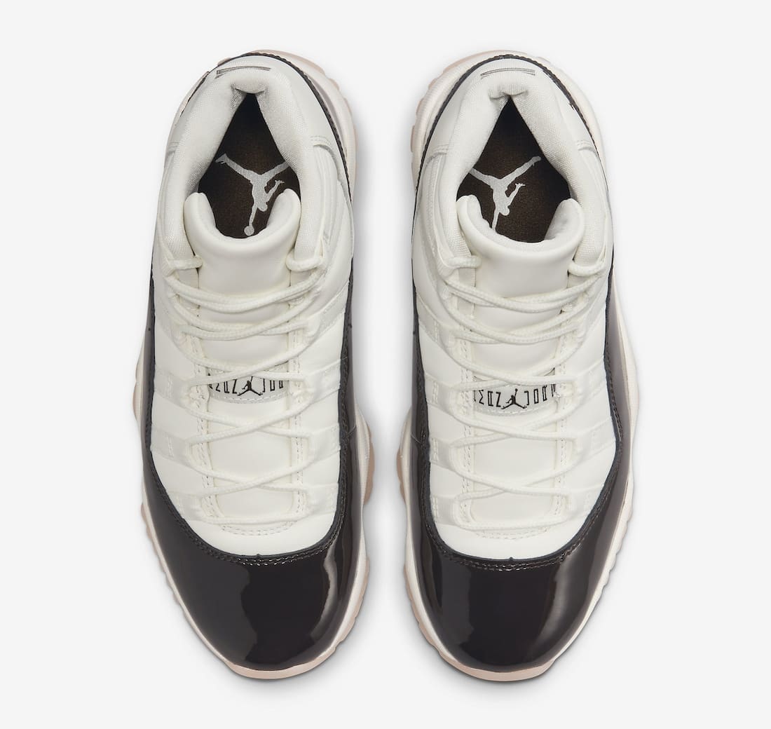 Drawing inspiration from the beloved ice cream flavor, this shoe showcases a captivating color palette consisting of Sail, Velvet Brown, and Atmosphere tones. The Air Jordan 11 boasts a charming combination of Vanilla (White), Chocolate (Dark Mocha), and Strawberry (Atmosphere/Pink) hues. Its design features a Sail base complemented by Brown patent leather mudguards, Jumpman logos, and branding on the heels. The delightful aesthetic is completed with a White midsole and a translucent Pink outsole. This mouth-watering sneaker will be presented in special packaging and will be available in women’s, preschool, and toddler sizes.
