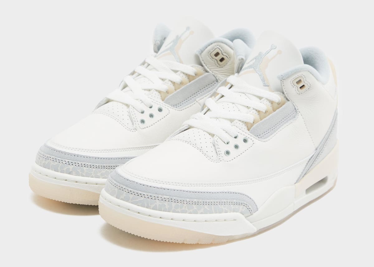 The latest addition to Jordan Brand’s “Craft” series, the Air Jordan 3 Craft Grey Mist will come dressed in an Ivory, Grey Mist, and Cream color scheme. Design details include an Ivory tumbled leather upper decorated with perforations on the collar. Elsewhere you will find smooth leather mudguards along with newly introduced suede overlays on the toe and heel. Other notable details include the aged semi-translucent eyelets and the suede eyestay. If that wasn’t enough, the sneaker’s most defining feature can be found on the heel tab that comes in a semi-translucent aged finish and houses both the Jumpman and Nike Air logos. Completing the look is an Ivory midsole atop a semi-translucent rubber outsole.
