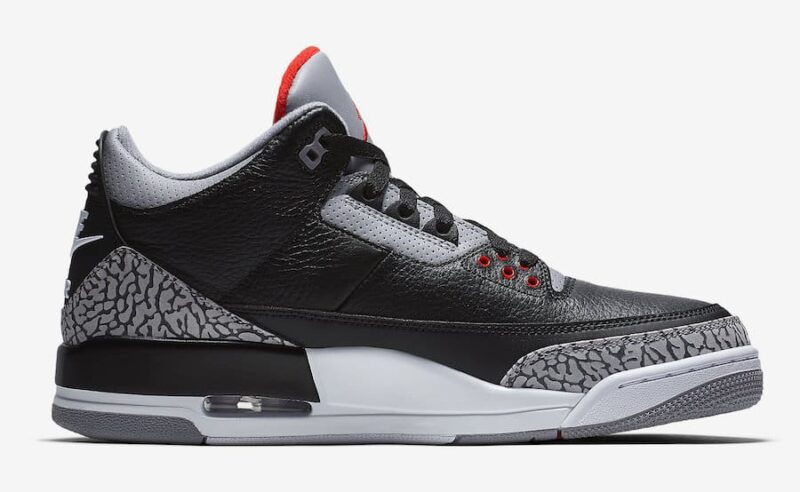 The reissue of the Air Jordan 3 will come dressed in its original Black, Cement Grey, White and Fire Red color scheme. They’ll come complete with classic Nike Air branding at the heel and outsole, along with Fire Red tongue lining, a signature seen on the colorway to complete the legendary look for the “Black Cement” 3s.