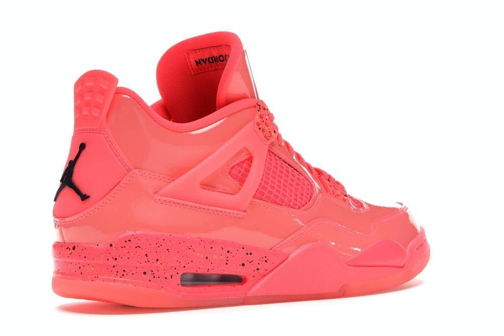 With striking patent leather on the upper, the Air Jordan 4 Retro Women’s Shoe brings a unique style and classic comfort to one of Jordan’s most iconic silhouettes. 01/19/2018 marks 30 years since the Air Jordan 4 first hit the basketball court, and this exclusive women’s edition of the Air Jordan 4 WMNS NRG “Hot Punch” is kicking off the celebration. Dipped in bold hot pink on its patent leather upper with plastic mesh on the sides, this lifestyle sneaker contrasts closure on this special edition with black and yellow through speckled detailing on the eyelets and the midsole. Other black details appear on the tongue and heel area, while a translucent outsole completes the vibrant design.