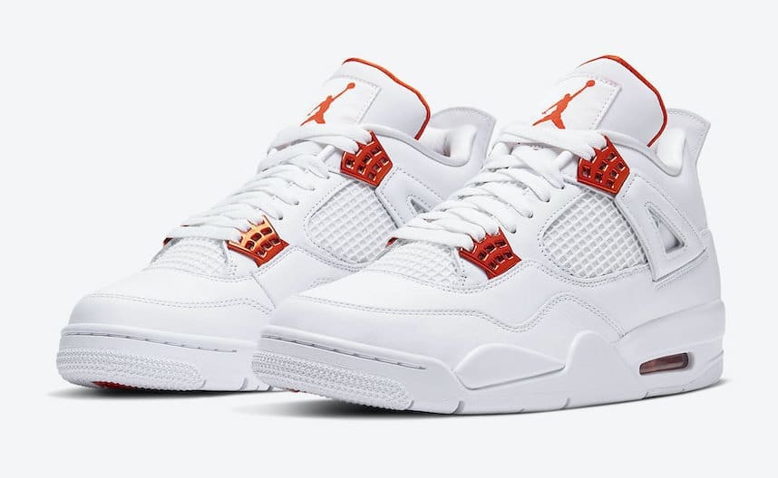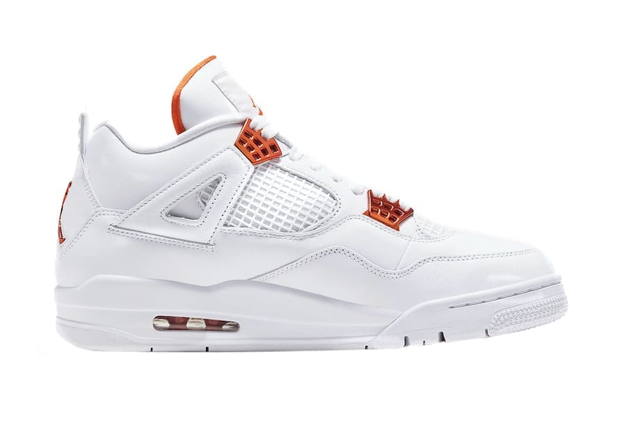 Jordan Brand pays homage to one of its earliest colorways with the Jordan 4 Retro Metallic Orange, now available at JORDANFANATICS. In 1985, the Air Jordan 1 was the first shoe in the line to feature a “metallic” finish. Four metallic color combinations were initially released, including red, orange, purple, and green. Joining the “Court Purple” and “Metallic Red” variations is the Air Jordan 4 “Orange Metallic,” another clean colorway of the classic silhouette. On the same theme as the above iteration, this AJ 4 has the perfect summer aesthetic with a White leather upper with metal eyelets, Jumpman branding and orange accents highlighted on the tongue rear lining. Finally, a matching white rubber sole completes the clean style.
