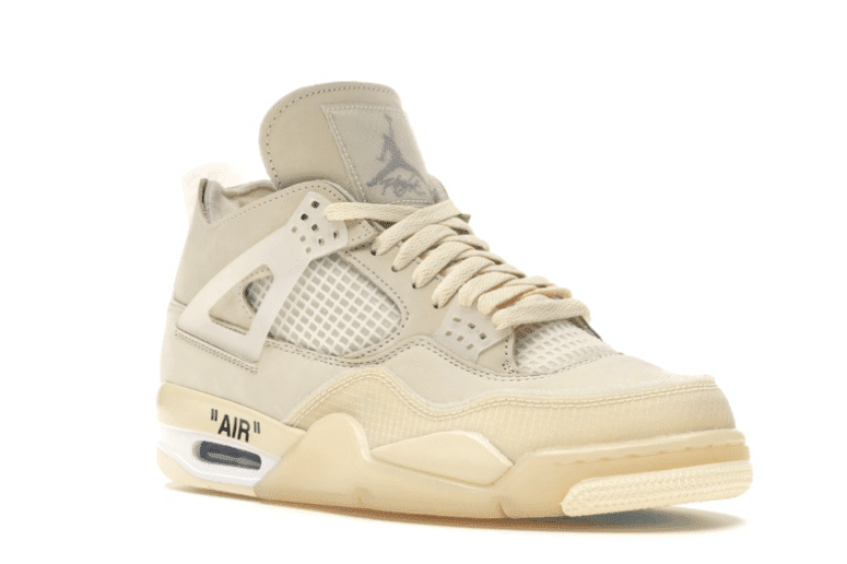 Jordan Brand and Virgil Abloh have teamed up once again to release the third silhouette in their collaborative history with the Jordan 4 Retro Off-White Sail (W), now available at TheGypsyBulldog. After teasing the release of the Off-White 4 with samples at his MCA exhibit and presenting them at his Off-White FW2020 Women’s Show, Virgil Abloh has finally delivered what could be the most anticipated release of 2020.