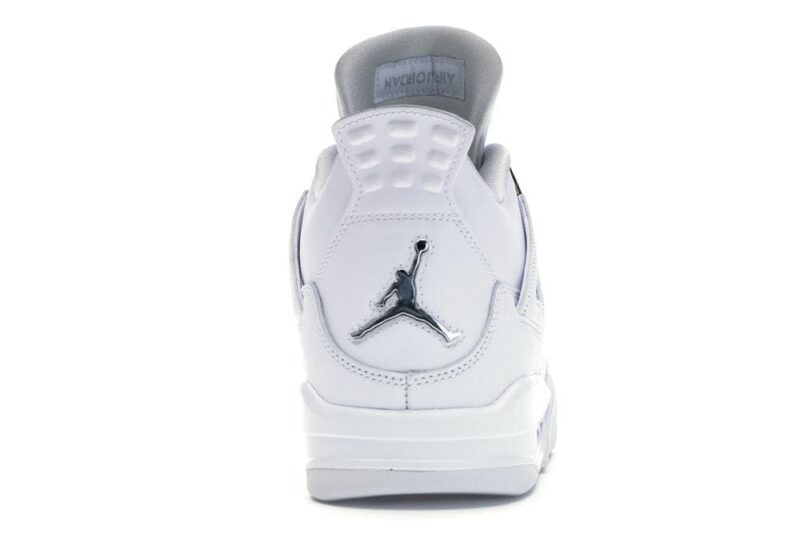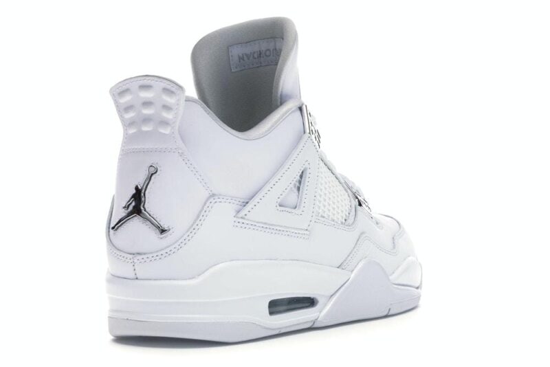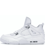This retro-remastered model features the timeless design of the white Air Jordan 4 with metallic details inspired by hues once seen on the Air Jordan 1. Full-grain leather is combined with mesh on the shoe’s upper. while the reliable herringbone-pattern rubber outsole creates a solid look. Eye-catching platinum – silver on the eyelets, tongue, heel, and outsole add the finishing touch to the shoe.