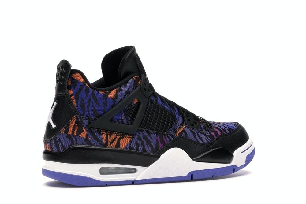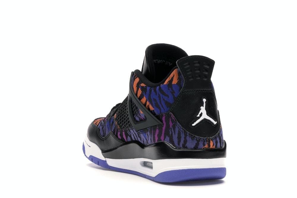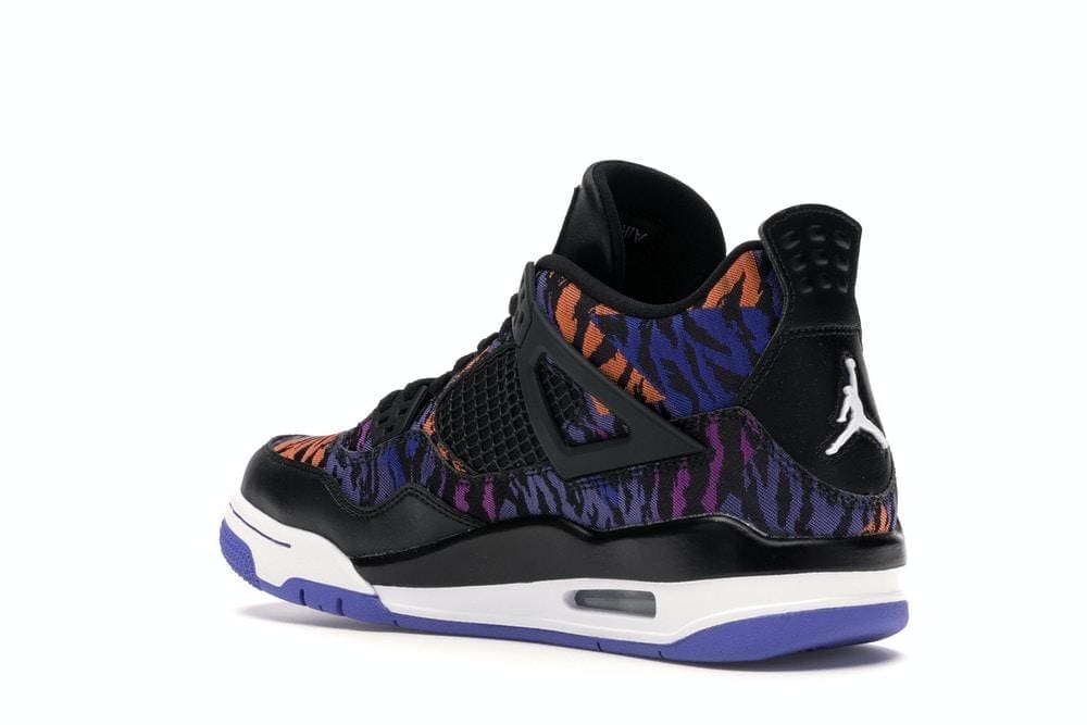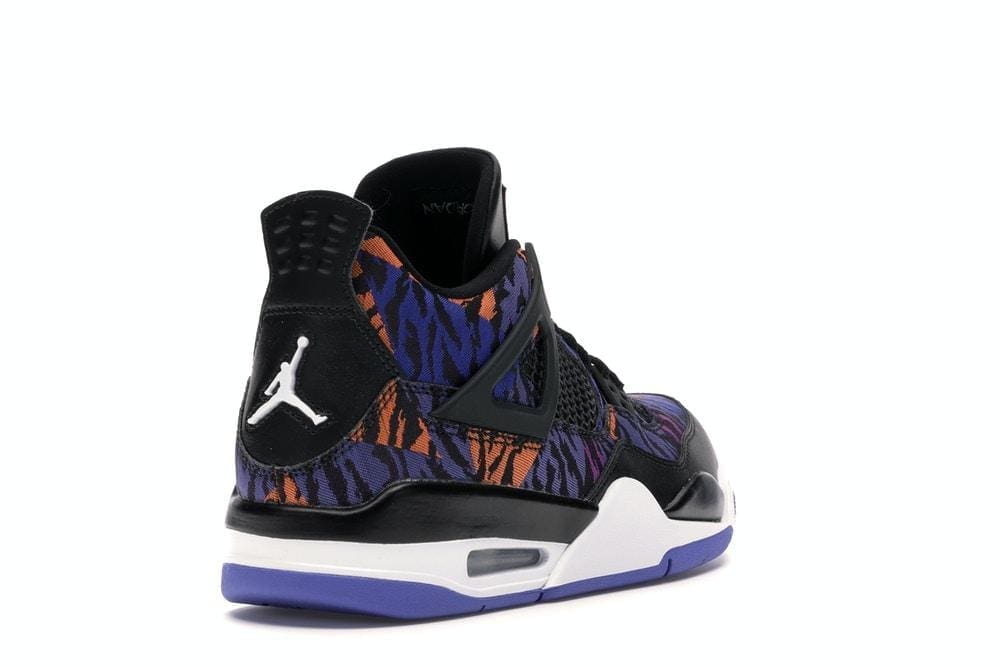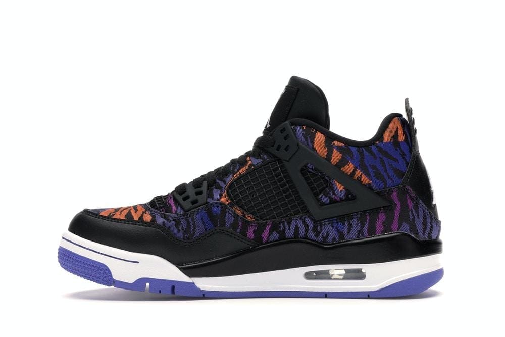 The Nike Air Jordan 4 Retro SE GG is an exclusive that features Michael Jordan’s iconic signature in a playful light. Revealed in November 2019, this edition has a tiger stripe textile upper with leather panels, mesh inserts, and premium lacewings. Jordan Flight branding remains on the tongue and heel. The shoe sits atop an Air-equipped midsole and herringbone-pattern rubber outsole in Rush Violet.