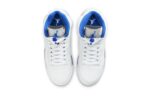 The sneaker starts off with all-white tumbled leather construction on the upper with the OG silver reflective tongue. Hyper Royal is then placed on the inner liner, Jumpman on the tongues, and lace lock. A silver midsole with black shark teeth and an icy blue translucent outsole with blue and black detailing wrap things up.