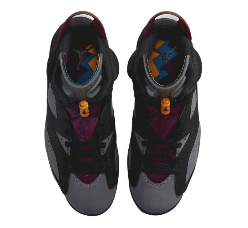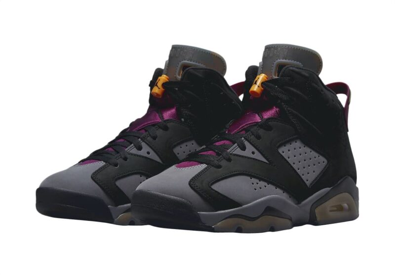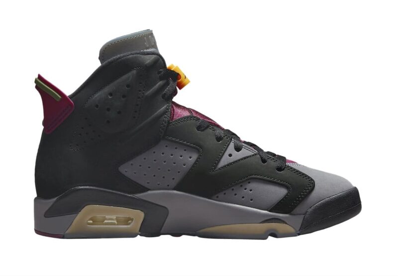 Done in an official color scheme listed as Black, Light Graphite, Dark Grey, and Bordeaux, this Air Jordan 6 dons a genuine nubuck upper made out of Light Graphite underlays and Dark Grey overlays. The two-toned upper is accompanied by the Bordeaux-printed translucent tongue and sock liner. Solid Bordeaux hits take care of the tongu overlay and heel pull tab. Coming in familiar packaging with a fresh color twist, this shoe releases in men’s and GS sizing. A two-toned midsole and translucent outsole round out the main features of the sneaker.
