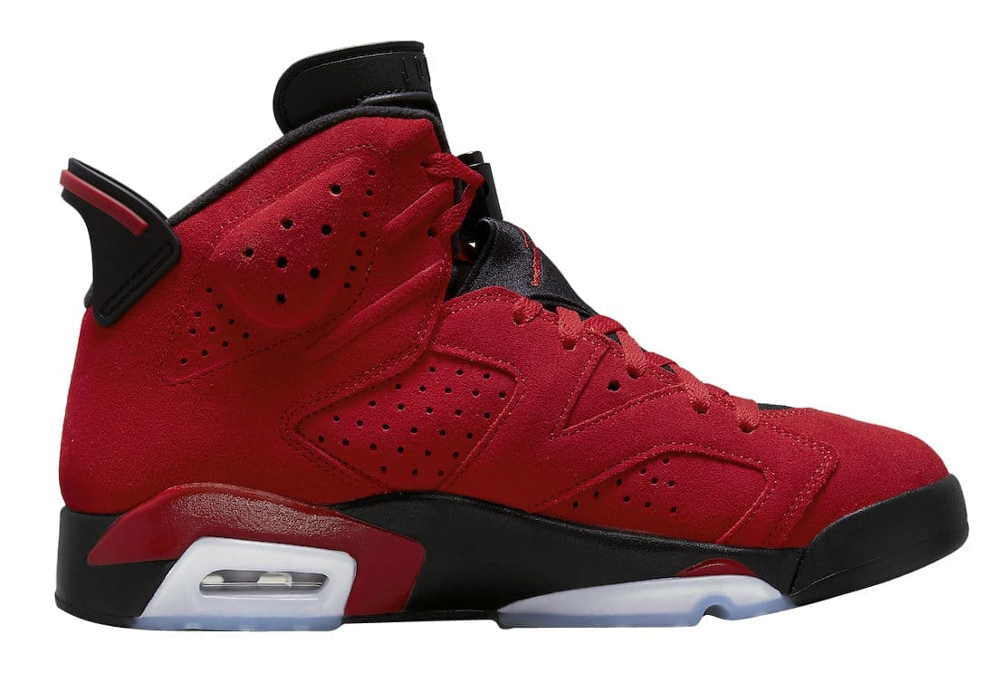 The latest addition to Toro Bravo theme, this bold iteration of the Air Jordan 6 will come dressed in a Varsity Red and Black color scheme. Detailed include an all-Red suede upper with Black accents on the tongues, heel tabs, and midsole. The sneaker will also come with Red laces and an icy translucent outsole.