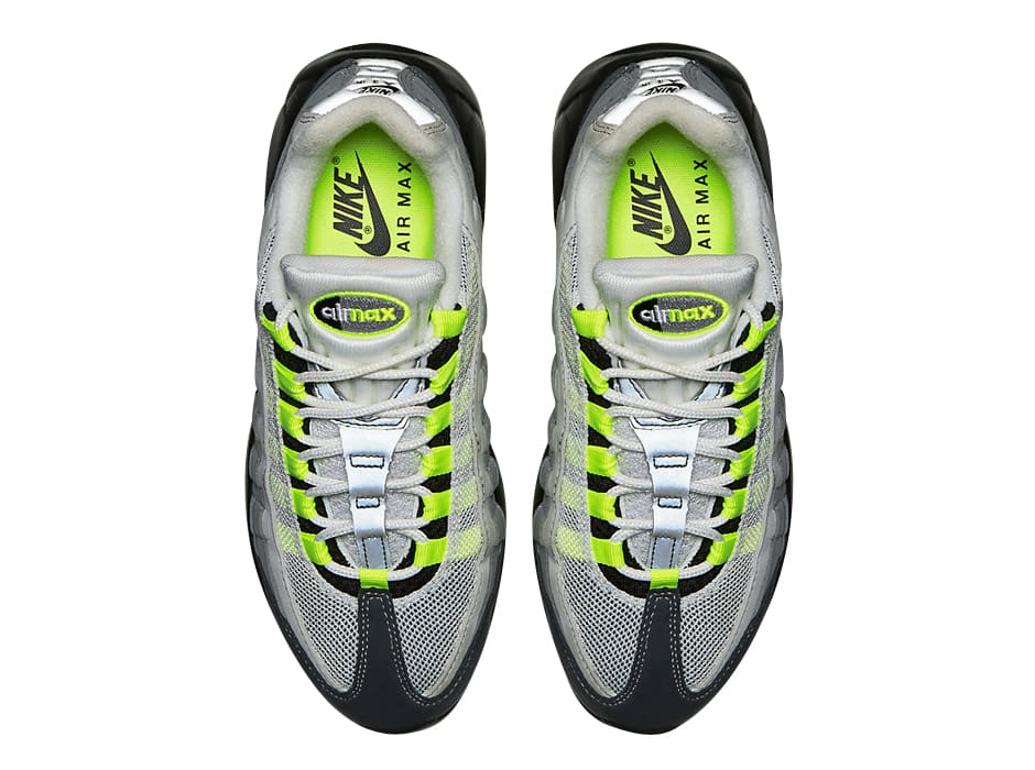The Nike Air Max 95 “Neon” brings back an iconic colorway that has stood the test of time. Featuring a gradient upper transitioning from black to grey, the shoe is highlighted by vibrant neon green accents on the eyelets, branding, and Air units. This dynamic design pays homage to the original 1995 release, blending retro style with modern comfort.