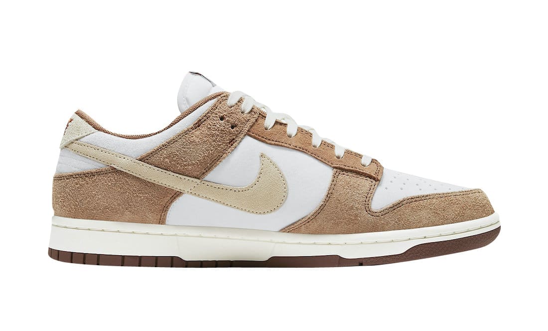 Sporting a color scheme of Sail, Medium Curry, and Fossil — the low-top boasts a plush suede construction with sail for its base and light brown covering the overlays. Finally, Fossil-colored Swooshes and heel tabs, followed by more sail for the midsoles and Curry rubber outsoles top off the design.