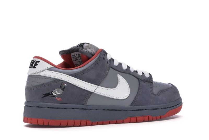 On the list of the craziest sneaker releases, the Jeff Staple-designed Nike SB Dunk Low NYC Pigeon is near the top. When Pigeon Dunks launched in 2005, word spread, and lines formed outside Reed Space, Jeff Staple’s store on the Lower East Side. By the time launch day arrived, the crowd had grown to such a size that the New York City police had to be called in to keep things in order and make sure shoppers could get home safely. All the attention made Pigeon Dunk’s release appear on the front page of the New York Daily News the next day. With only 150 pairs produced, the Pigeon SB Dunk is one of the most popular Nike SB releases of all time, and even without the exclusivity, the colorway is one of the best. Inspired by the most common bird in New York, the Dunk Low is officially colored as a medium grey/white-dark grey, but it’s the combination of gray on the upper, a white Swoosh, an orange pigeon-foot-like outsole, and the dove stitched on the heel making this colorway the one every sneaker enthusiast would love to get their hands on. The Nike SB Dunk Low NYC Pigeon not only helped bring energy to Nike Skateboarding in 2005 but started a long line of successful shoes inspired by Jeff Staple’s New York pigeons. an orange dove foot-like sole and the dove stitched on the heel make this colorway one that all sneaker enthusiasts would want to get their hands on. The Nike SB Dunk Low NYC Pigeon not only helped bring energy to Nike Skateboarding in 2005 but started a long line of successful shoes inspired by Jeff Staple’s New York pigeons. an orange pigeon foot-like sole and dove stitched on the heel make this colorway one that all sneaker enthusiasts would want to get their hands on. The Nike SB Dunk Low NYC Pigeon not only helped bring energy to Nike Skateboarding in 2005 but started a long line of successful shoes inspired by Jeff Staple’s New York pigeons.